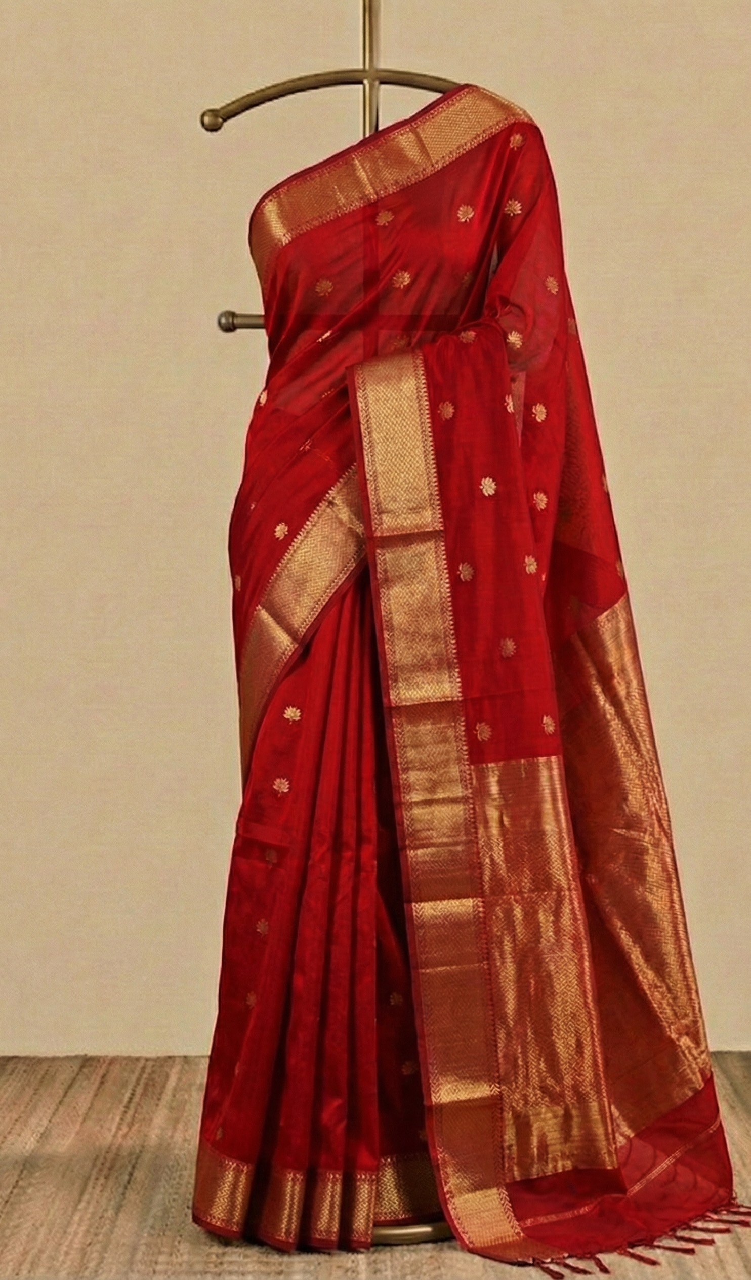 Be the first to review “Red Lotus Butta Maheshwari Handloom Saree”