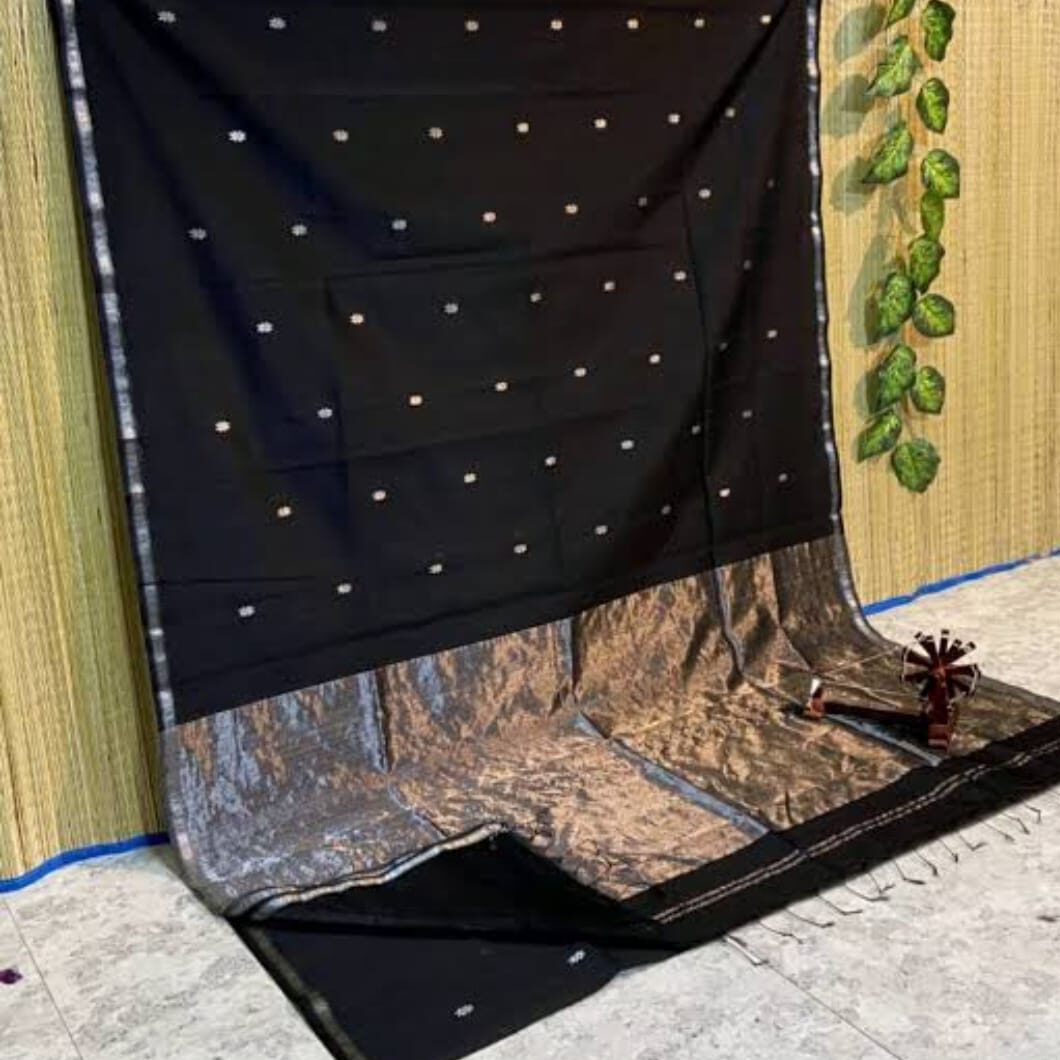 Black Handloom Maheshwari saree with silver Zari
